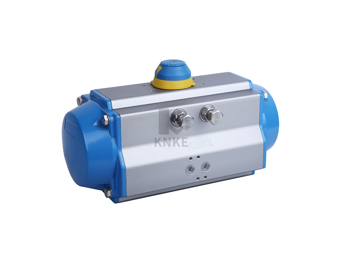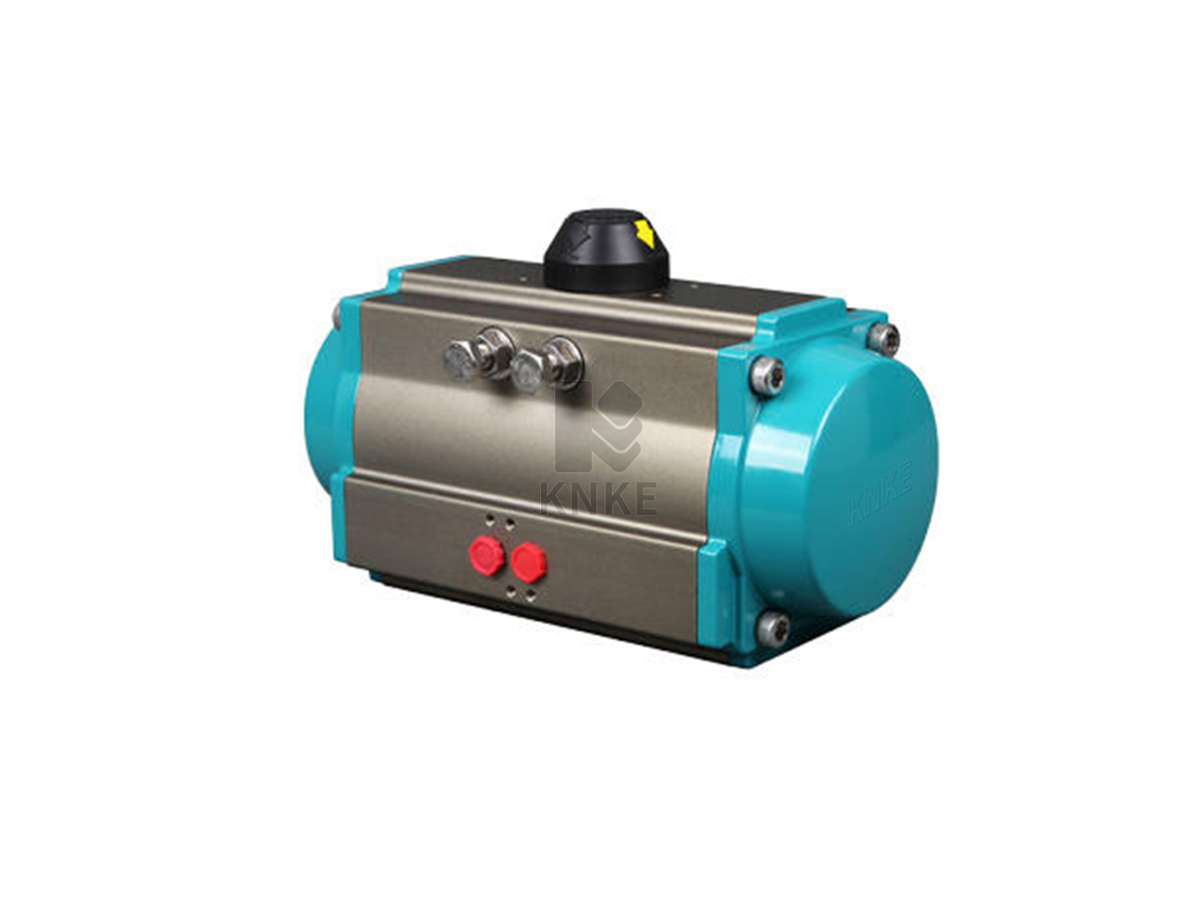 产品描述: 铝合金气动执行器,Aluminum alloy pneumatic actuator,是指缸体采用铝合金材质的科恩科KNKE气动执行器,是一种双活塞齿条与齿轮转动结构的气动执行机构。科恩科KNKE的气动执行器为活塞式,活塞式行程长,适用于要求有较大推力的场合,不但可以直接带动阀杆,而且可以和蜗轮蜗杆等配合使用。铝合金气动执行器可装配智能阀门......